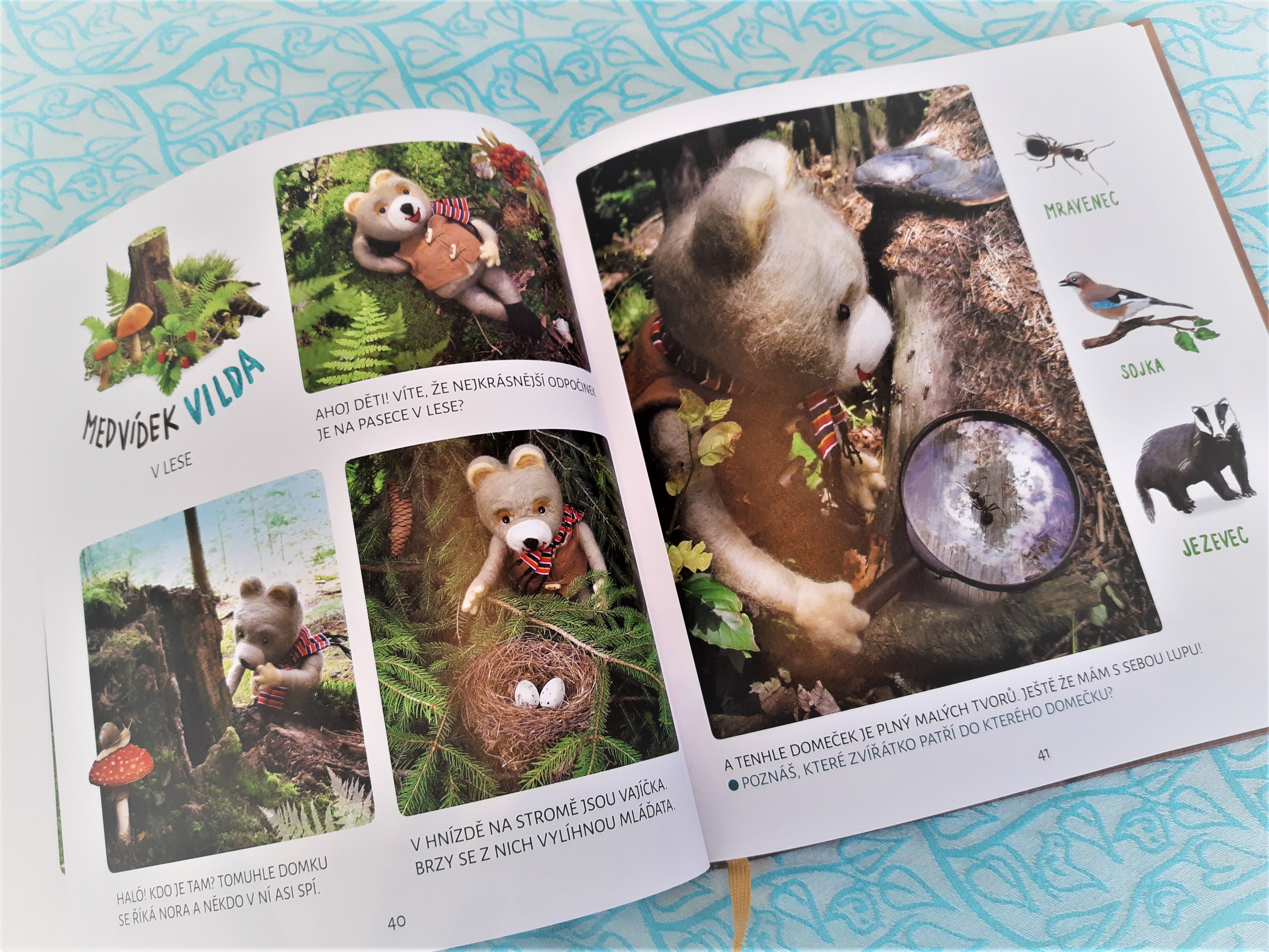 Ráda bych vyzvedla zejména rozmanitost a inspirativnost této knížky. Původně jsem si myslela, že kniha bude shrnutím klasických obrázkových příběhů, tak jak je znám z časopisu – ty jsou zakončené jednoduchými úkoly typu hledání rozdílů, různá přiřazování, hledání nesmyslů, hádanky atp. Knížka je však doplněna i o další pohádkové příběhy, které jsou čtivé a ve kterých se děti dozví vždy i nějakou zajímavost – jako třeba rozdíl mezi zajícem a králíkem, jak se z vajíčka stane žába, co za brouka je kněžice, čím se doopravdy živí ježek, co je kadibudka a další zajímavosti. Vše je tištěno větším písmem, takže je knížka vhodná i pro první čtení.