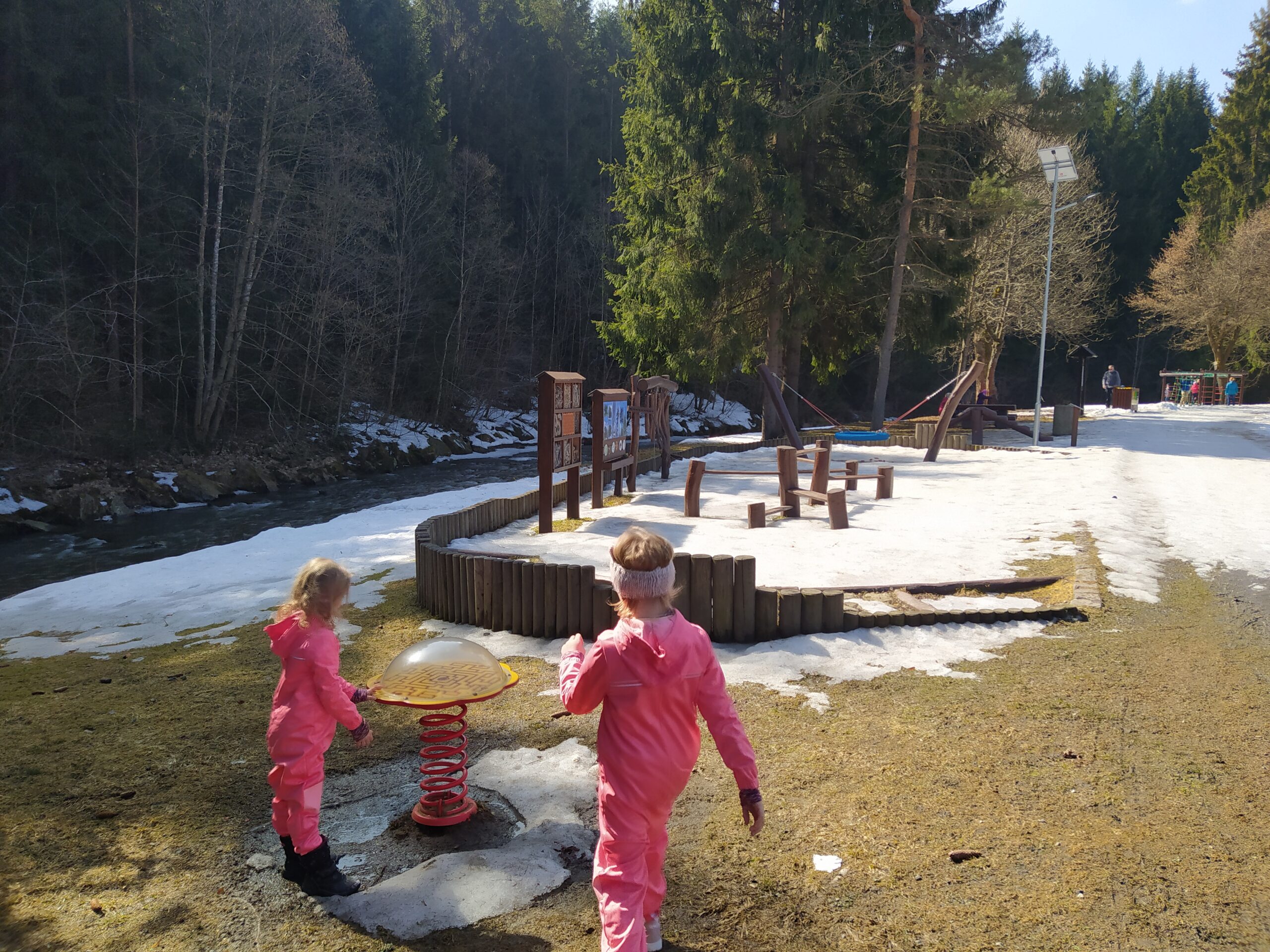 My jsme zde byli naposledy v březnu 2022, kdy jsme zaparkovali u sjezdovky a udělali si procházku podél řeky. Narazili jsme na pěkné dětské hřiště, které holky využily a pak jsme dále pokračovali k obůrce, kterou jsme si celou obešli a pokračovali procházkou zpět ke sjezdovce k autu.