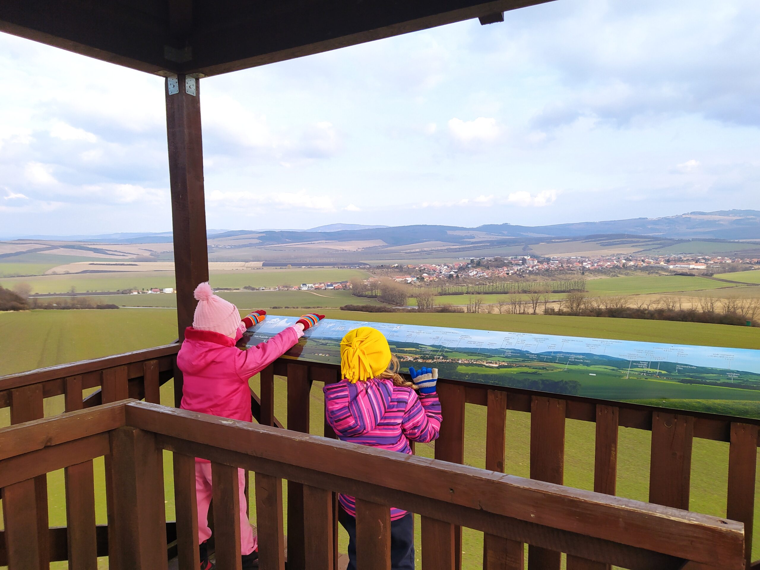 Dle místa zaparkování si volíte délku trasy procházky. My auto nechali u Bánovského letiště a ušli jsme tedy dohromady něco přes 4 km. Z rozhledny jsme pak obdivovali náš Uherský Brod, ale i Bánov, Mikulčin Vrch, Malý a Velký Lopeník a vidět bylo i na Javořinu.