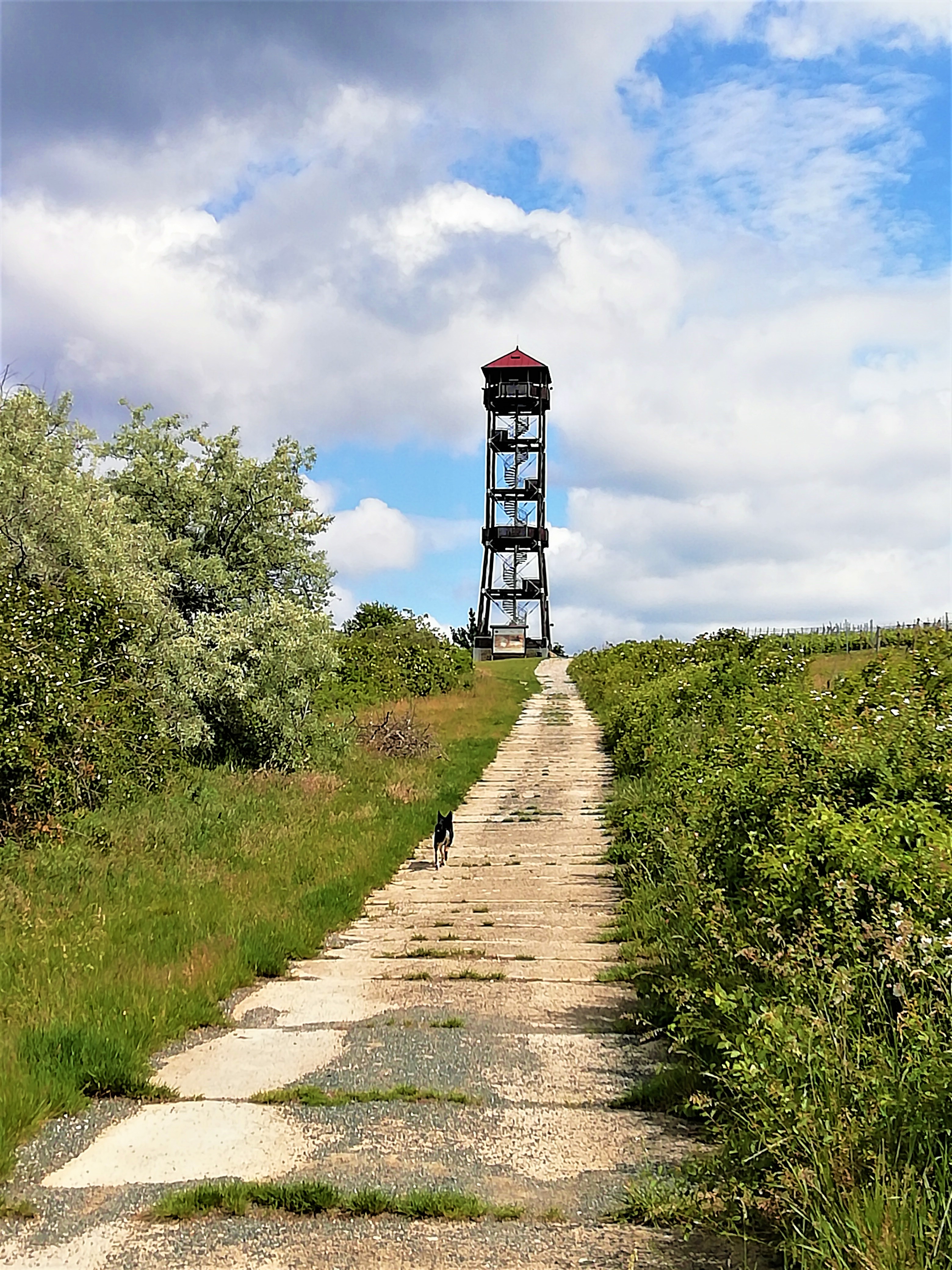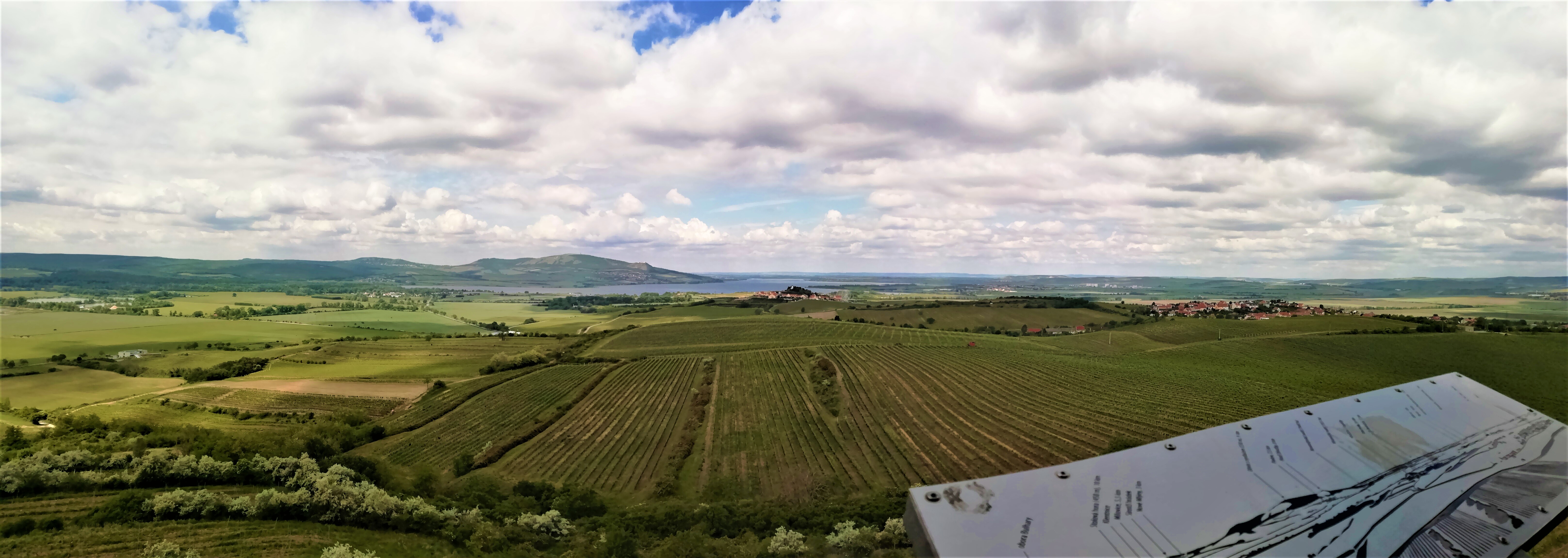 Rozhledna Maják je určitě rozhlednou na pravém místě. Určitě to znáte, když vyjdete na hezkou rozhlednu, ale ten výhled za moc nestojí. Zde se Vám to stát nemůže. I když rozhledna není na pohled ničím výjimečná, nabízí krásný výhled na všechny strany … na okolní vinice, Pálavu, Děvín, Nové Mlýny… Nahoře se nachází také panoramatická tabule s popisky, což vždy oceňuji.