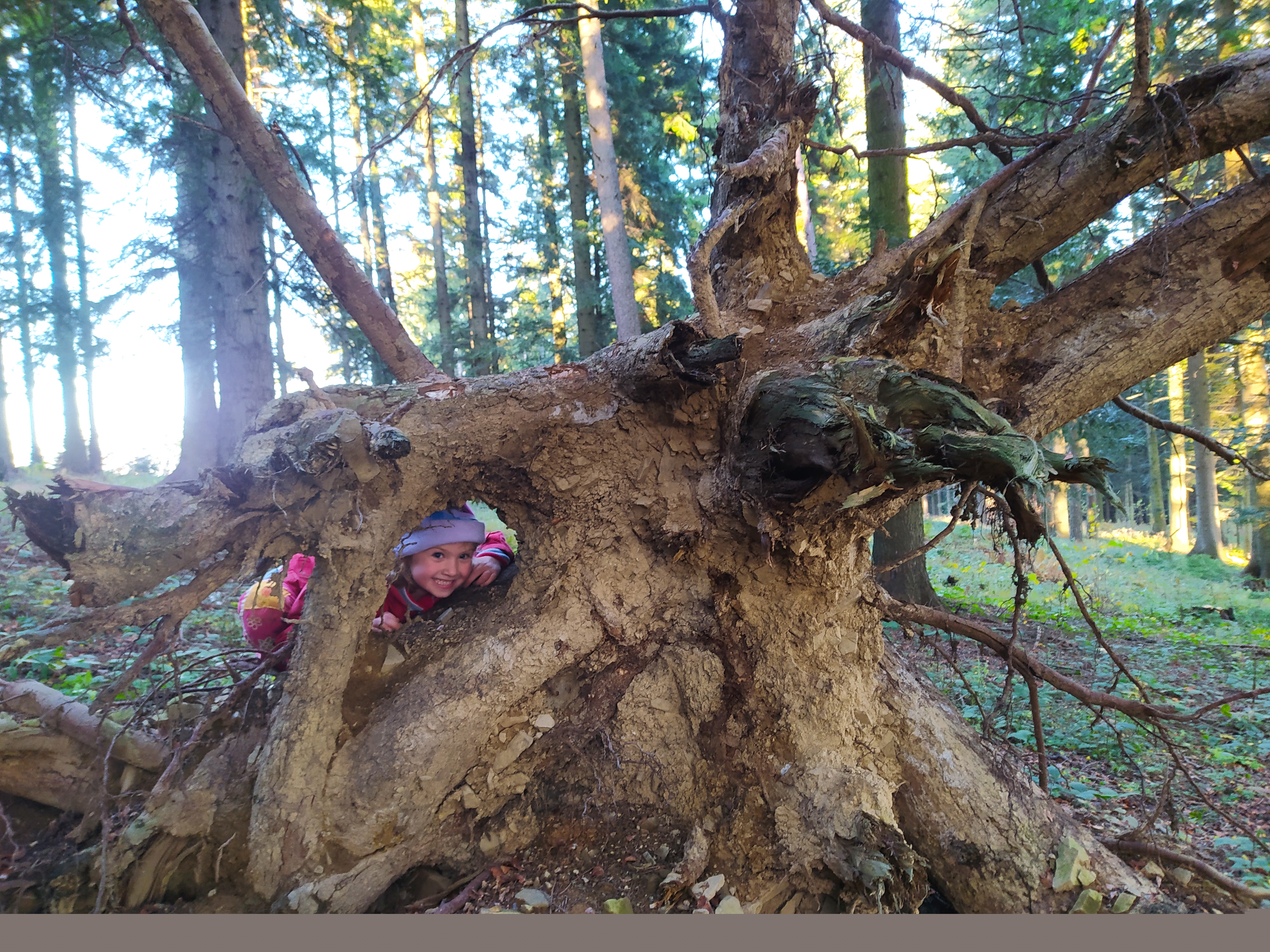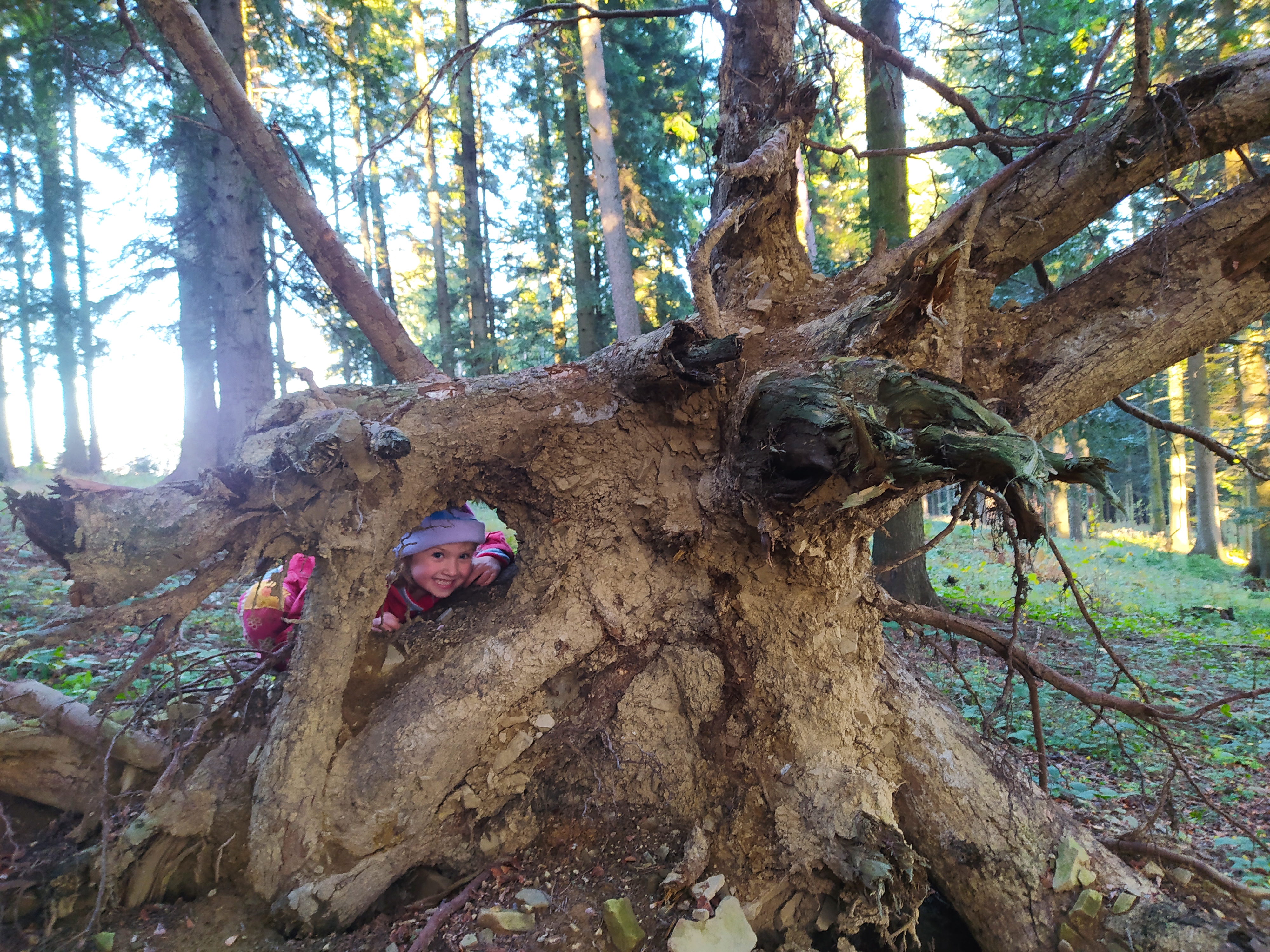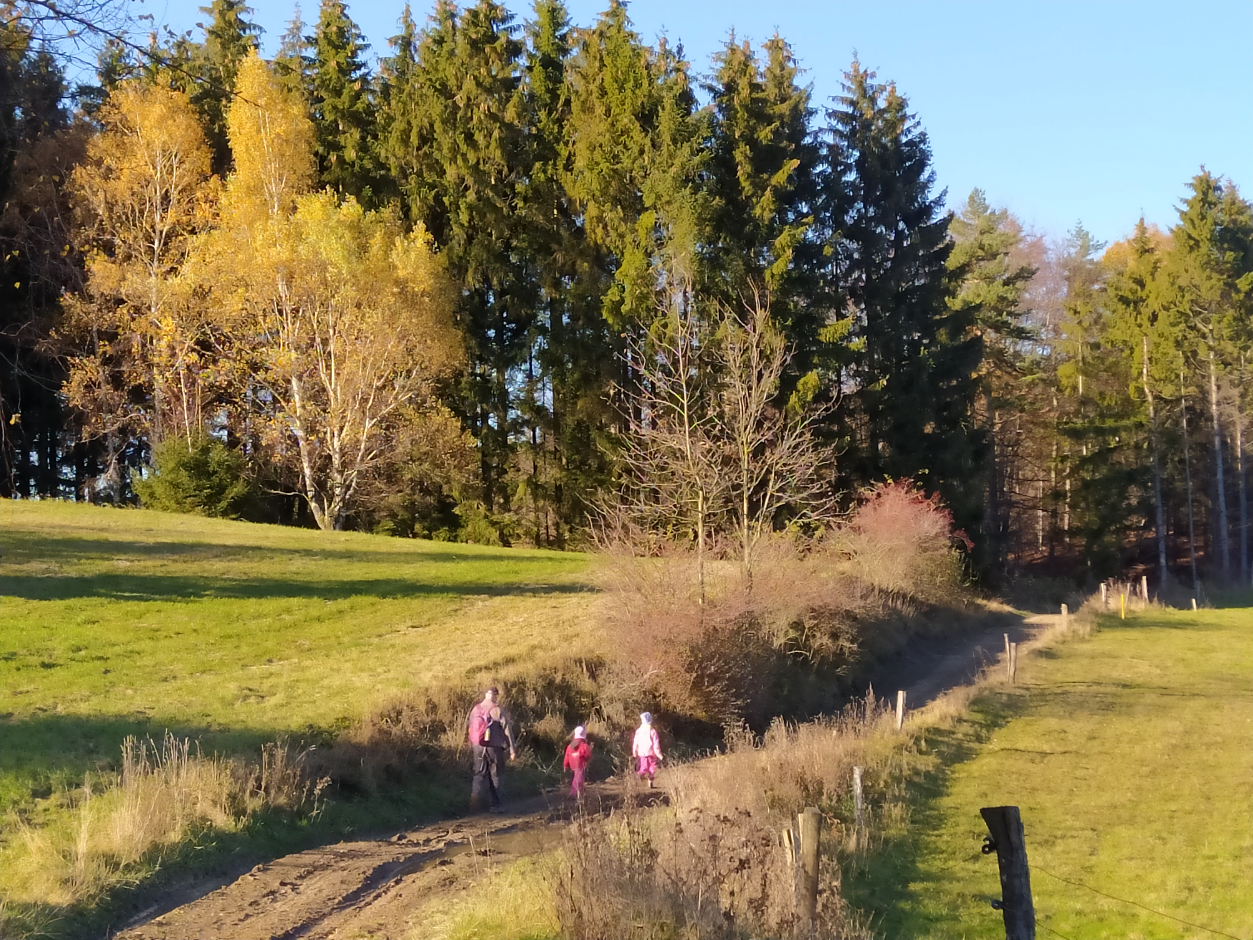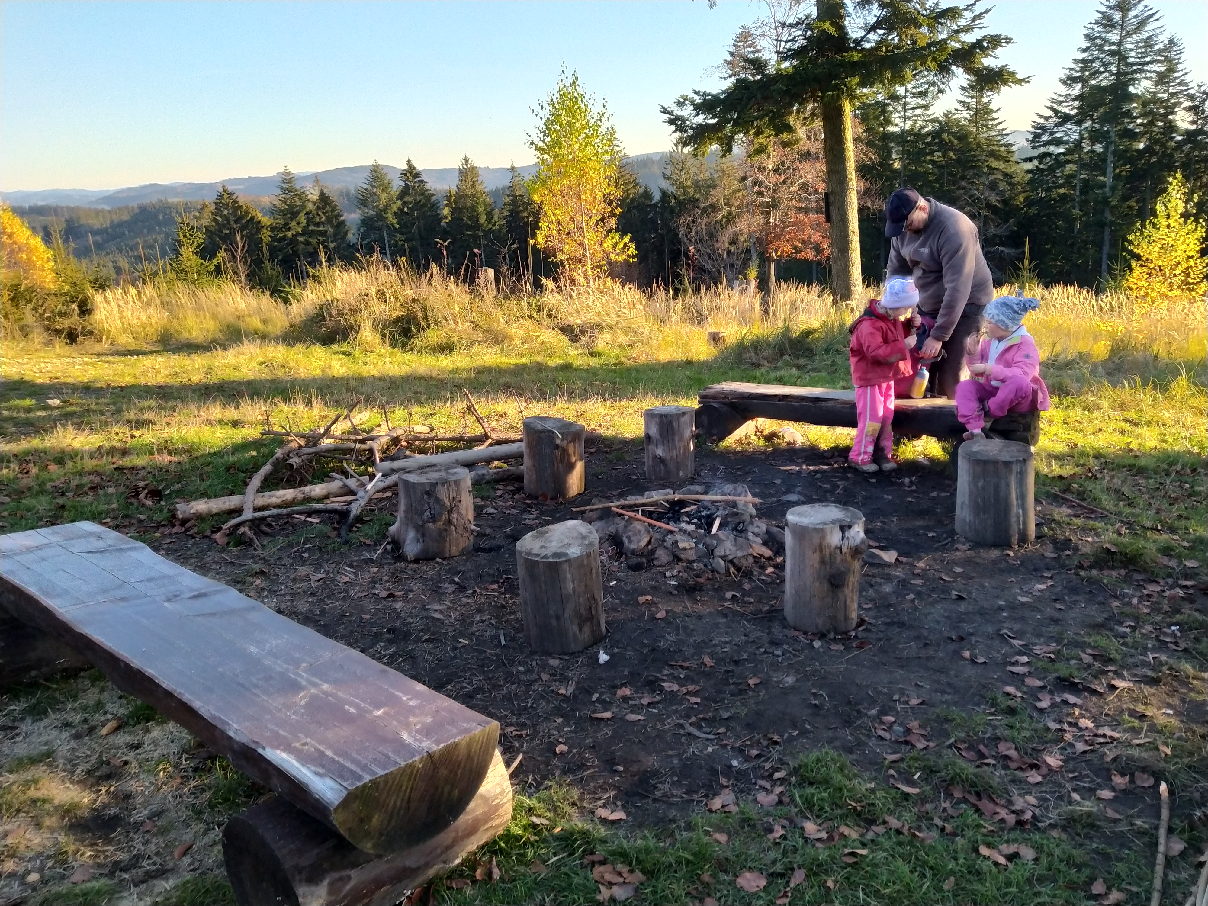 No a to nejlepší na nás teprve čekalo. Bahnitá cesta do kopce po žlutočervené a následně i žlutomodré turistické značce a naučné stezce K rozhledně vede Naučná stezka Chodníček k rozhledně. Počasí nám vyšlo krásné, ale v místech kde nesvítilo sluníčko bylo v lese neskutečné bahno. Naše Bětuška ho měla až po kolena a několikrát po cestě i upadla takže ve finále byla od bahna celá.